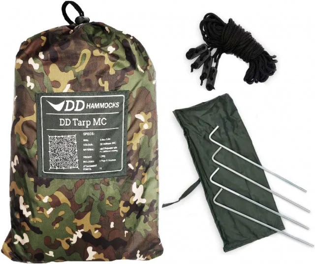 Tenda DD Hammocks 3.5 x 3.5 – camuflaj ofera aceeasi versatilitate si optiuni de configurare ca si cea 3 x 3, cu o acoperire suplimentara de 33%. Cele 19 puncte de atasare ranforsate si dimensiunea gestionabila ofera un numar mare de optiuni de configurare.